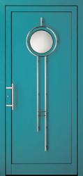 Alu-Haustür Modell HT 120/1 Modell HT 120/1Tür: wärmegedämmte Profile,Türstärke 75 mm oder 60 mm,Type A, türkisblau RAL 5018 pulverbeschichtet.Füllung: Merkur, türkisblau.Glas: ISO-Float + Float weiß.Applikation: Edelstahl.Griff: V630 Edelstahl, Rundrosette. Sicherheitsausstattung (optional):- 3- oder 5-fach Verriegelung- Sperrbügel- Sicherheitsglas- Schutzbeschlag zurück
